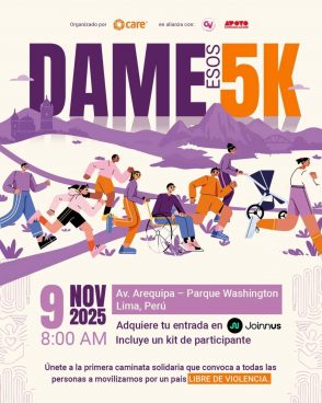Por eso, CARE Perú organiza la caminata solidaria “Dame esos 5K”, una iniciativa que busca movilizar a la ciudadanía para seguir financiando programas de prevención de violencia y empoderamiento económico de mujeres en distintas regiones del país.