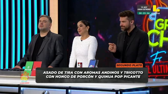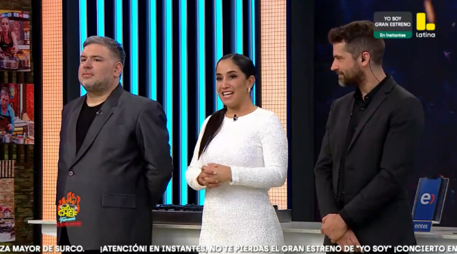 - 9:28 p.m.: Javier Masías, Nelly Rossinelli y Luciano Mazzetti dan sus ÚLTIMAS palabras antes de conocer al ganador de “El Gran Chef Famosos, El Último Campeón”.