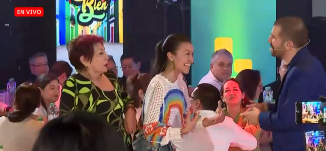 - 6:18 p.m.: Meche (Natalia Salas) y Roxana (Fiorella Luna) también llegan al escenario.