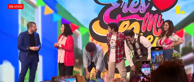 - 6:20 p.m.: La familia de Meche llega al estudio: su esposo Emerson (Claudio Calmet) y sus hijos Alan (Diego Villarán) y David (Leandro Hernández).