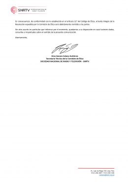 A través de un comunicado, la Comisión de Ética de la Sociedad Nacional de Radio y Televisión informó que Latina no infringió los principios reconocidos en el artículo 3° de su Código de Ética.